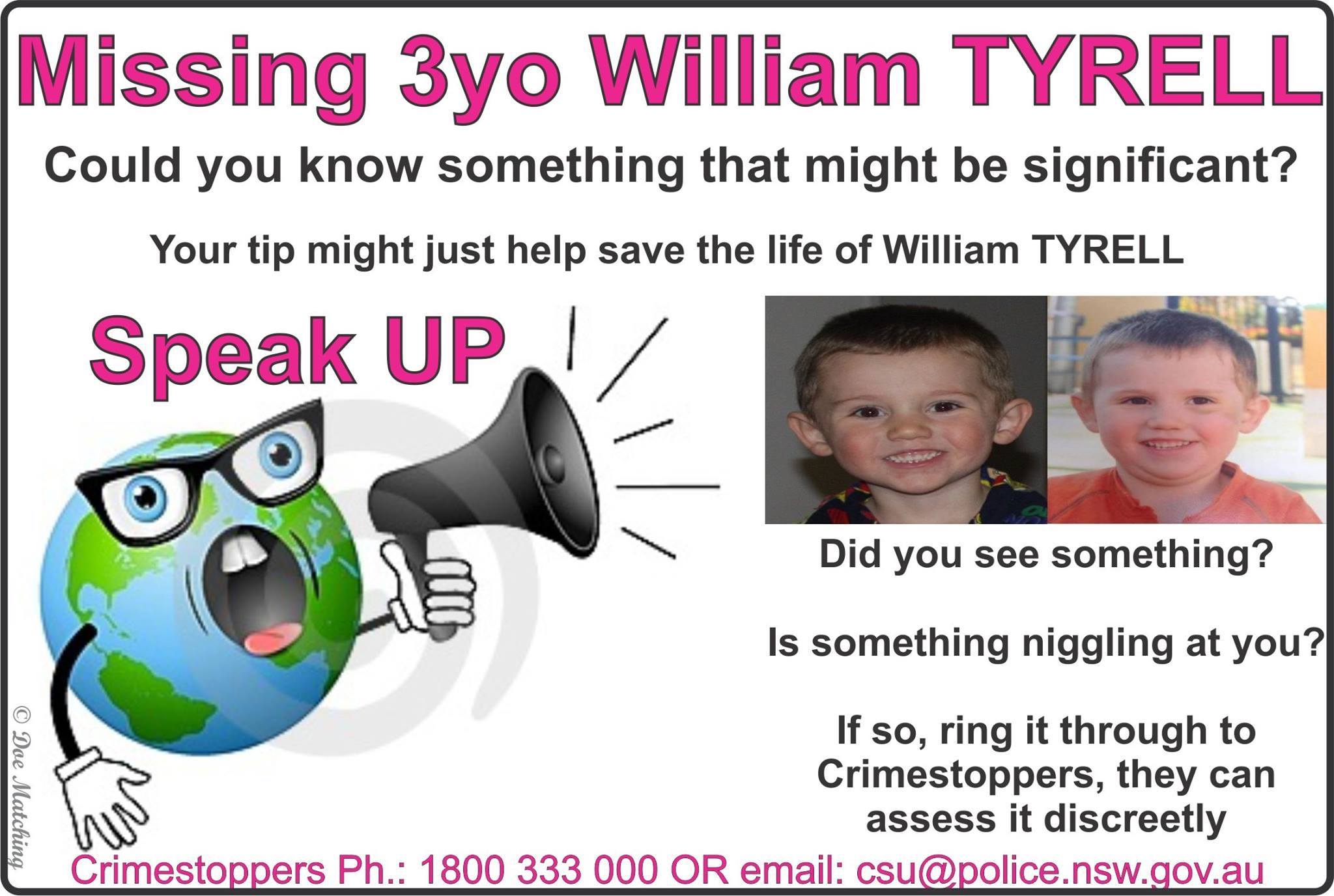 New Lead Questioned By Police Over William Tyrrell S Disappearance Mouths Of Mums from mouthsofmums.com.au We did not find results for: Maybe you would like to learn more about one of these? Check spelling or type a new query.